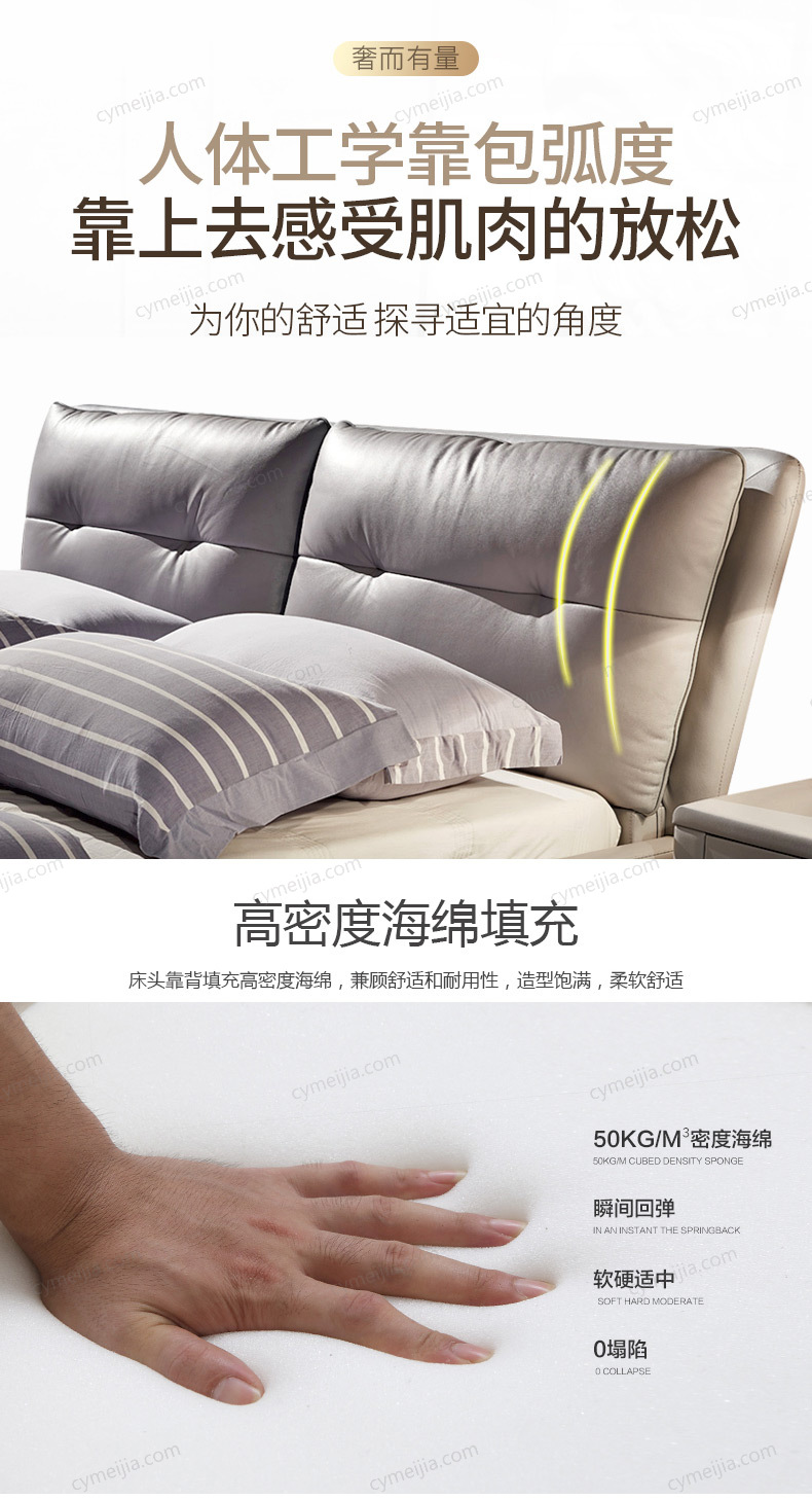 | 适配床垫 : | 长2000*宽1800*高220mm |