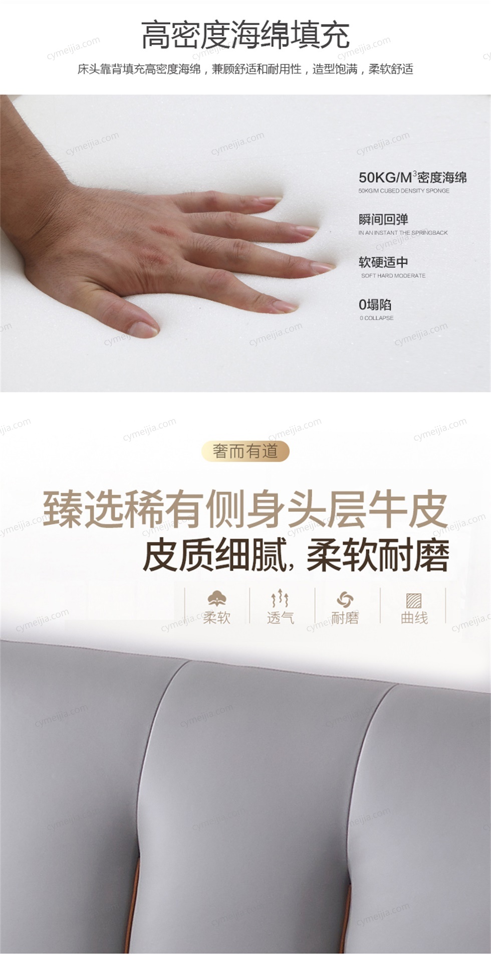 | 产品材质 : | 接触面进口头层黄牛皮+实木框架+十公分松木排骨架+高弹海绵 |