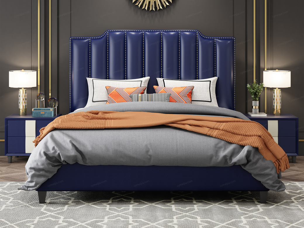 | 产品材质 : | 头层黄牛皮(接触面)+仿真皮(非接触面)+实木(床侧)+10公分松木排骨架 |