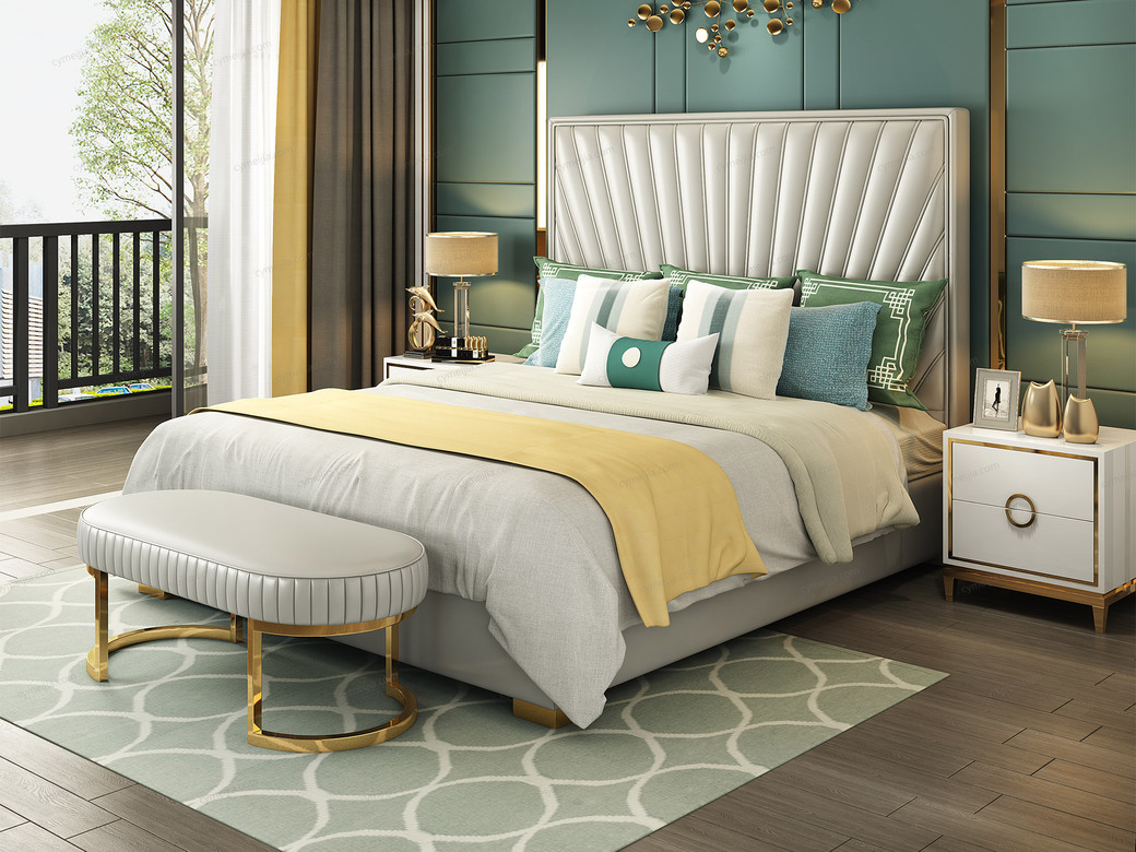 | 产品材质 : | 头层黄牛皮(接触面)+仿真皮(非接触面)+实木(床侧)+10公分松木排骨架 |