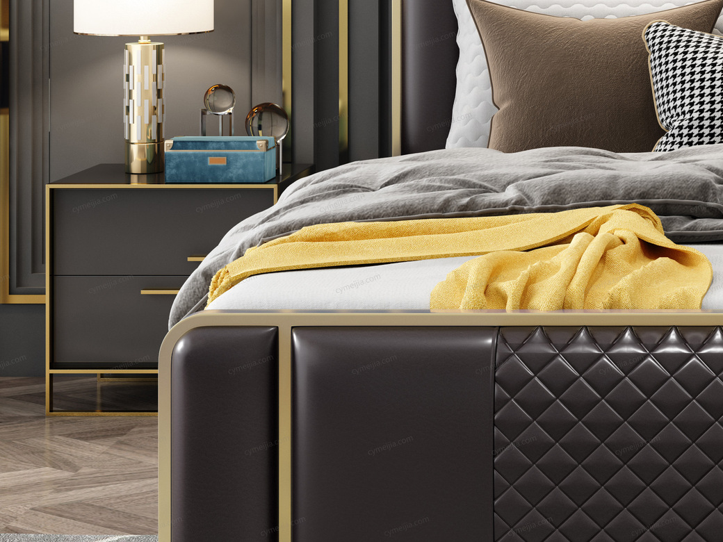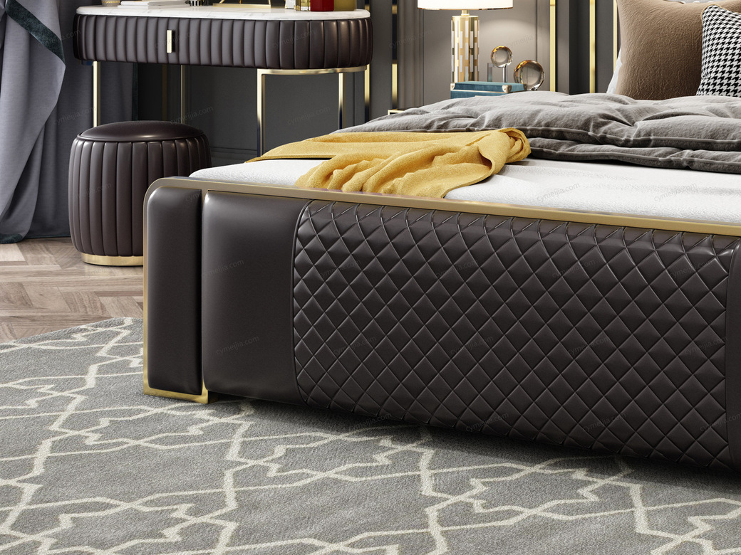 | 产品材质 : | 头层黄牛皮(接触面)+仿真皮(非接触面)+实木(床侧)+10公分松木排骨架 |