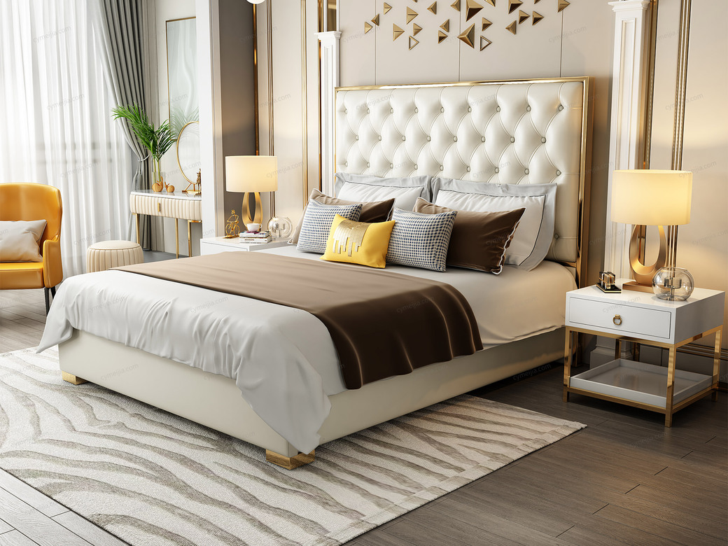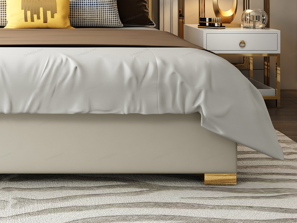 | 产品材质 : | 头层黄牛皮(接触面)+仿真皮(非接触面)+实木(床侧)+10公分松木排骨架 |