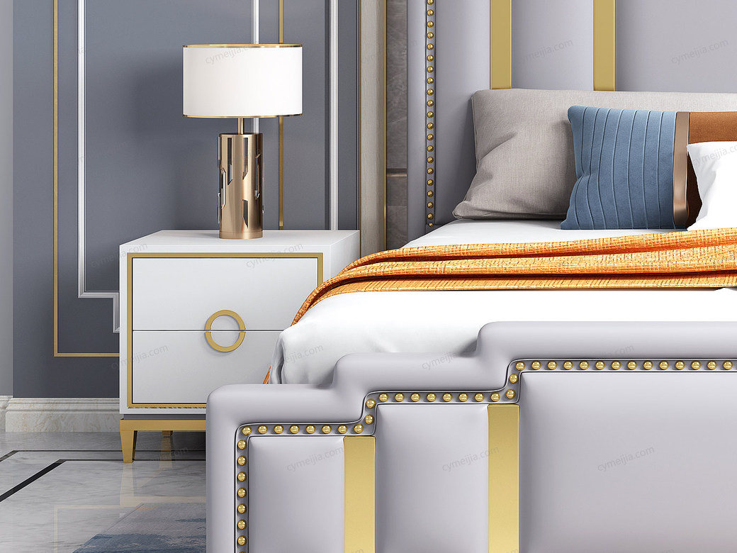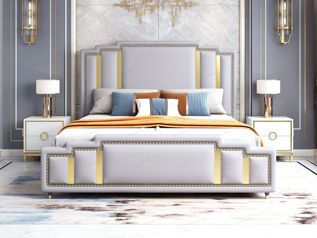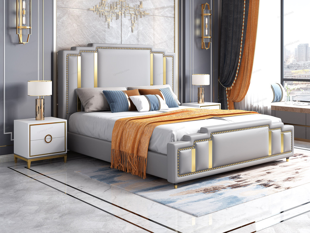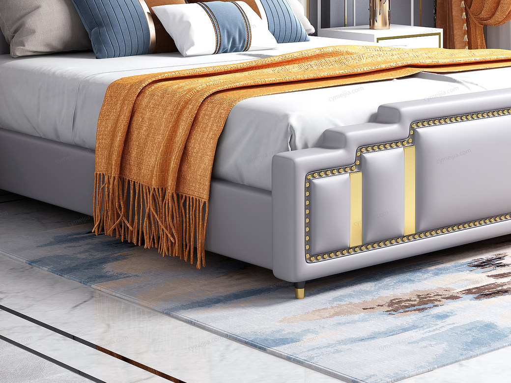 | 产品材质 : | 头层黄牛皮(接触面)+仿真皮(非接触面)+实木(床侧)+10公分松木排骨架 |
