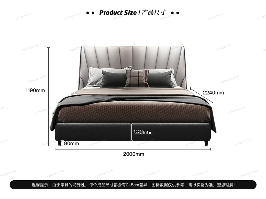 | 产品材质 : | 仿真皮+实木(床侧)+10公分松木排骨架 |