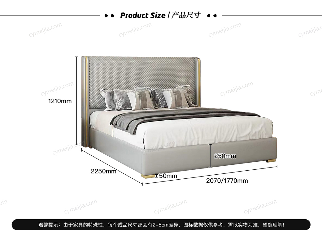 | 适配床垫 : | 长2000*宽1500*高(220-250)mm |