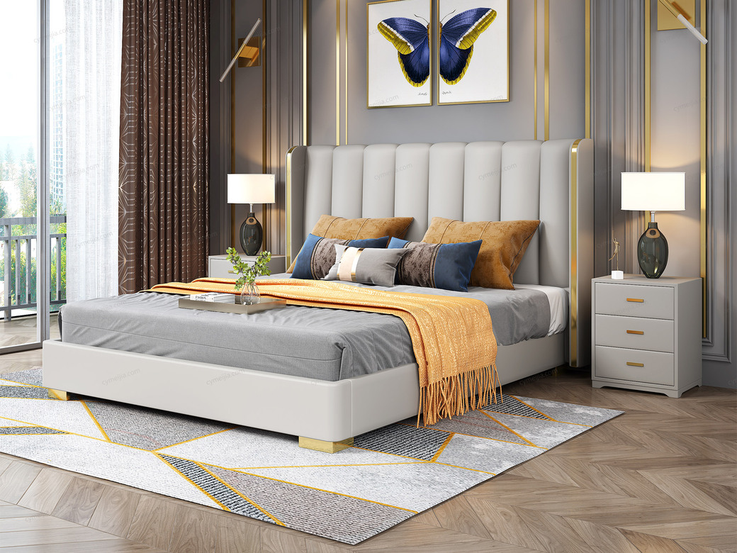 | 产品材质 : | 仿真皮+实木(床侧)+10公分松木排骨架 |