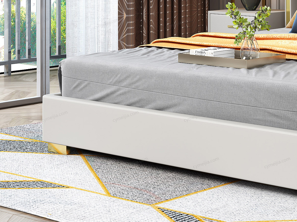 | 产品材质 : | 仿真皮+实木(床侧)+10公分松木排骨架 |