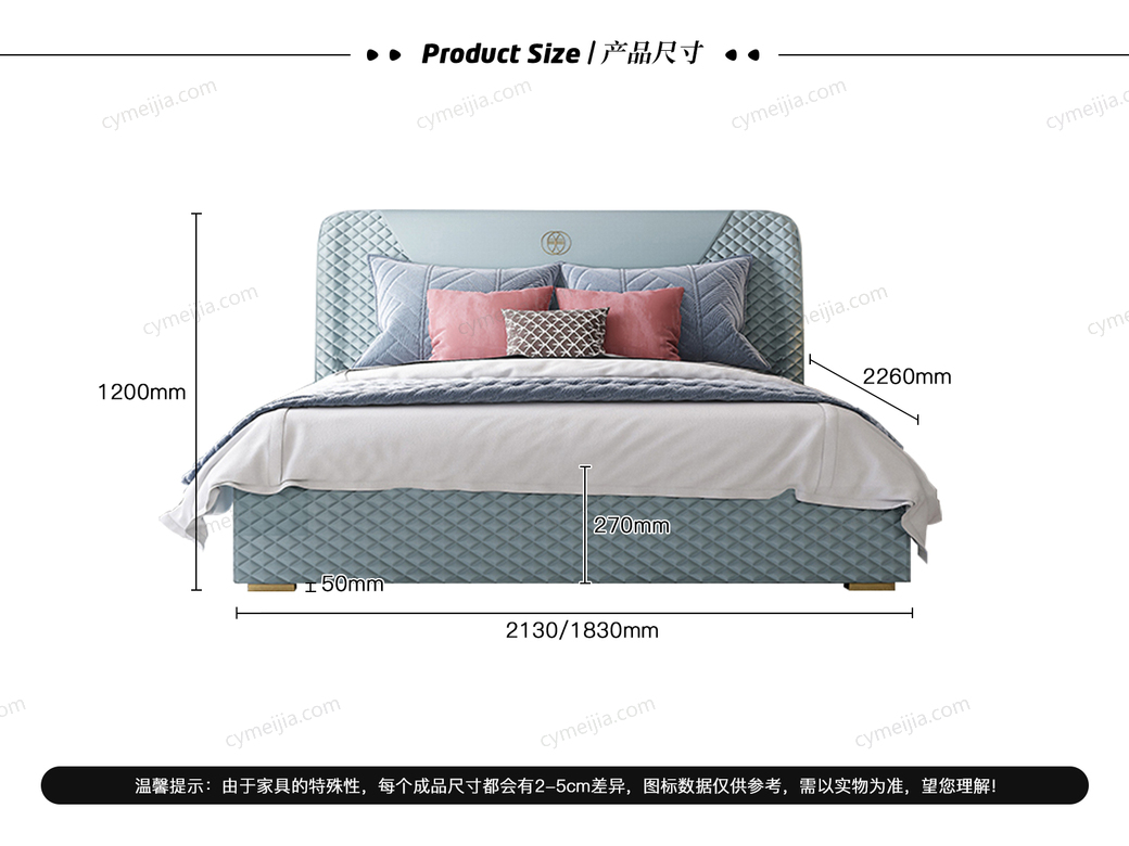 | 适配床垫 : | 长2000*宽1800*高(220-250)mm |