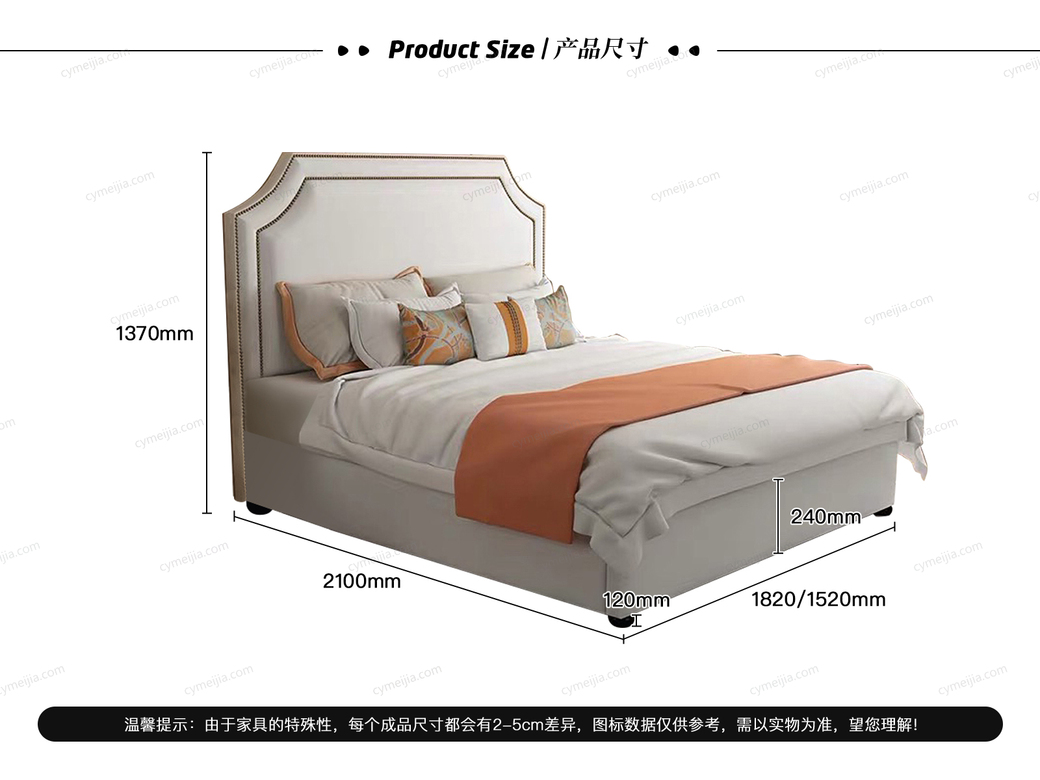 | 适配床垫 : | 长2000*宽1500*高(220-250)mm |