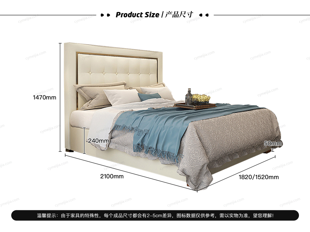 | 适配床垫 : | 长2000*宽1500*高(220-250)mm |