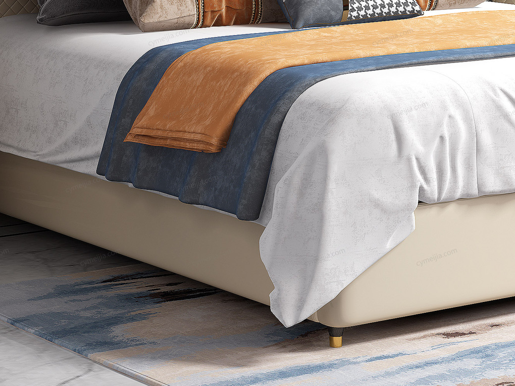 | 产品材质 : | 头层黄牛皮(接触面)+仿真皮(非接触面)+实木(床侧)+10公分松木排骨架 |