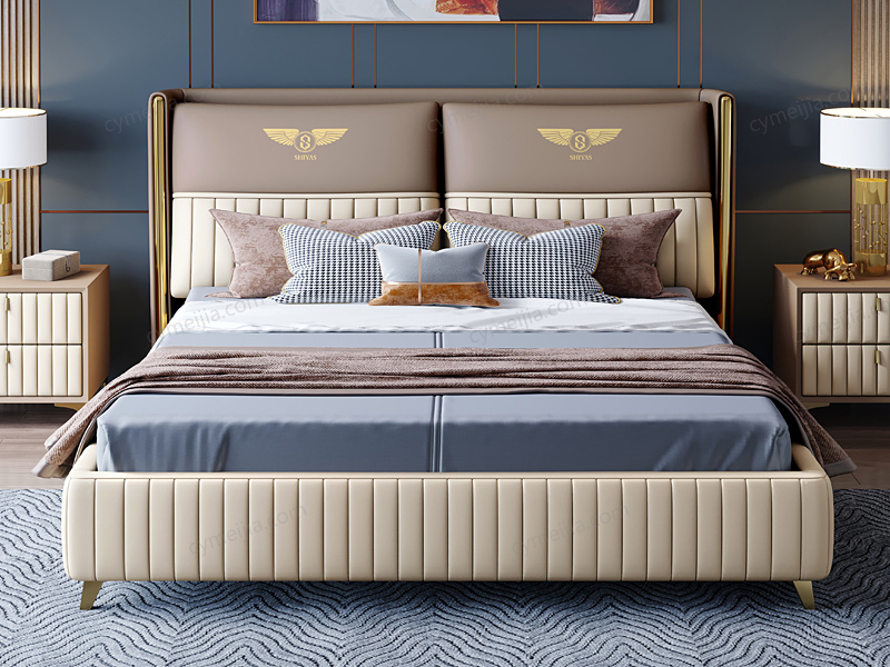 | 产品材质 : | 仿真皮+实木(床侧)+10公分松木排骨架 |