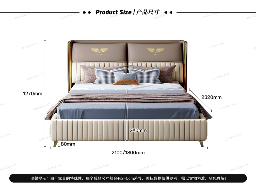 | 适配床垫 : | 长2000*宽1800*高(220-250)mm |