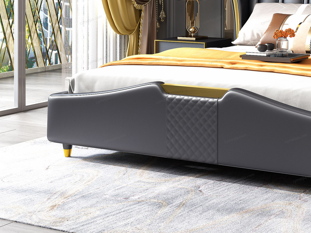 | 产品材质 : | 仿真皮+实木(床侧)+10公分松木排骨架 |