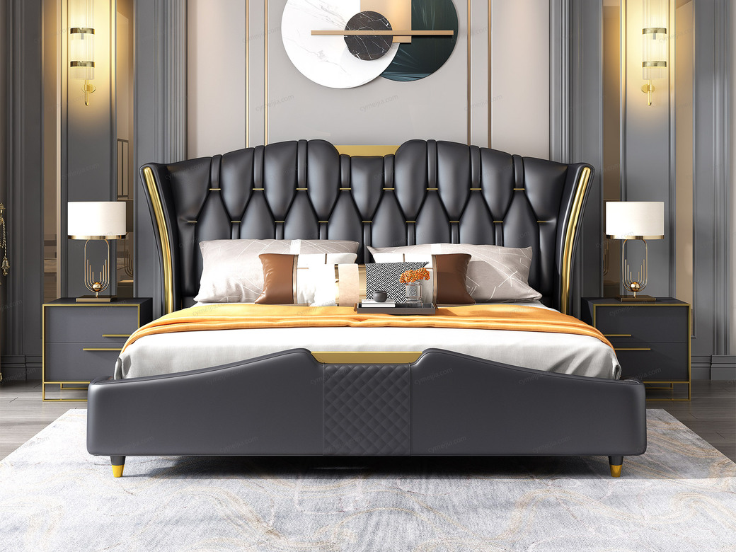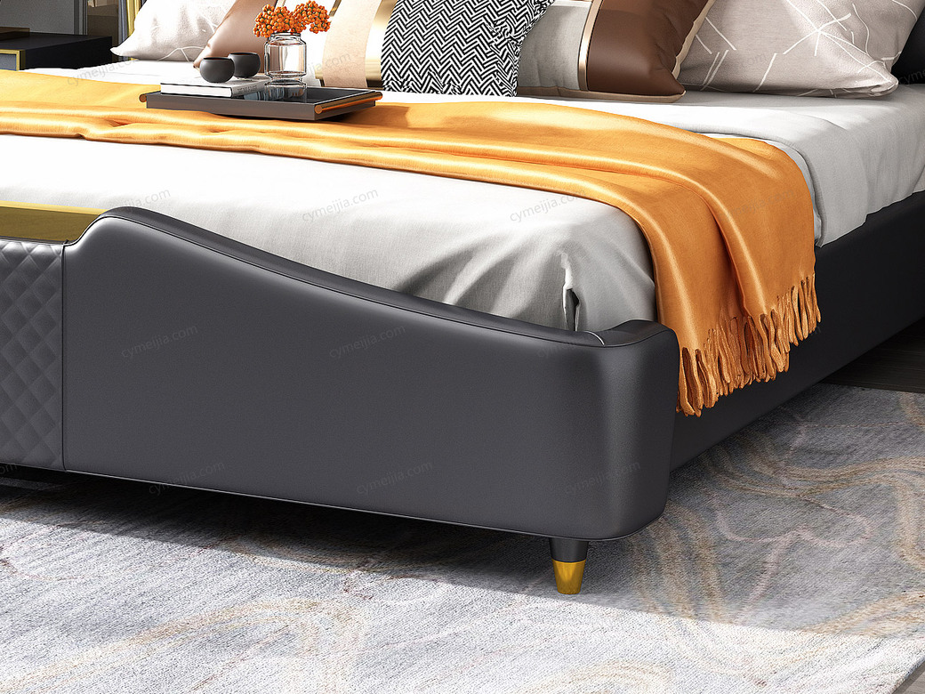 | 产品材质 : | 头层黄牛皮(接触面)+仿真皮(非接触面)+实木(床侧)+10公分松木排骨架 |
