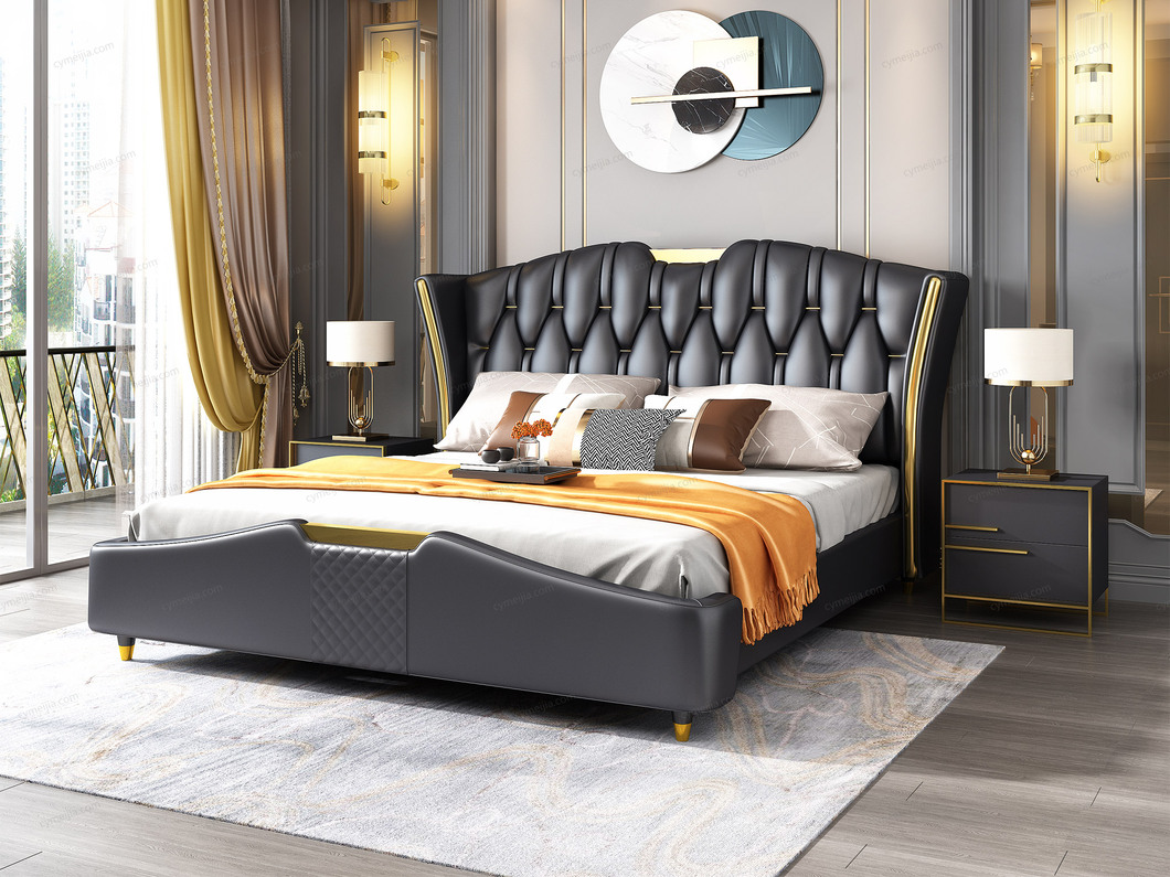| 包装体积(m3) : 1.15 | 产地 : 佛山 | 产品材质 : 头层黄牛皮(接触面)+仿真皮(非接触面)+实木(床侧)+10公分松木排骨架 | 更多参数>> |
