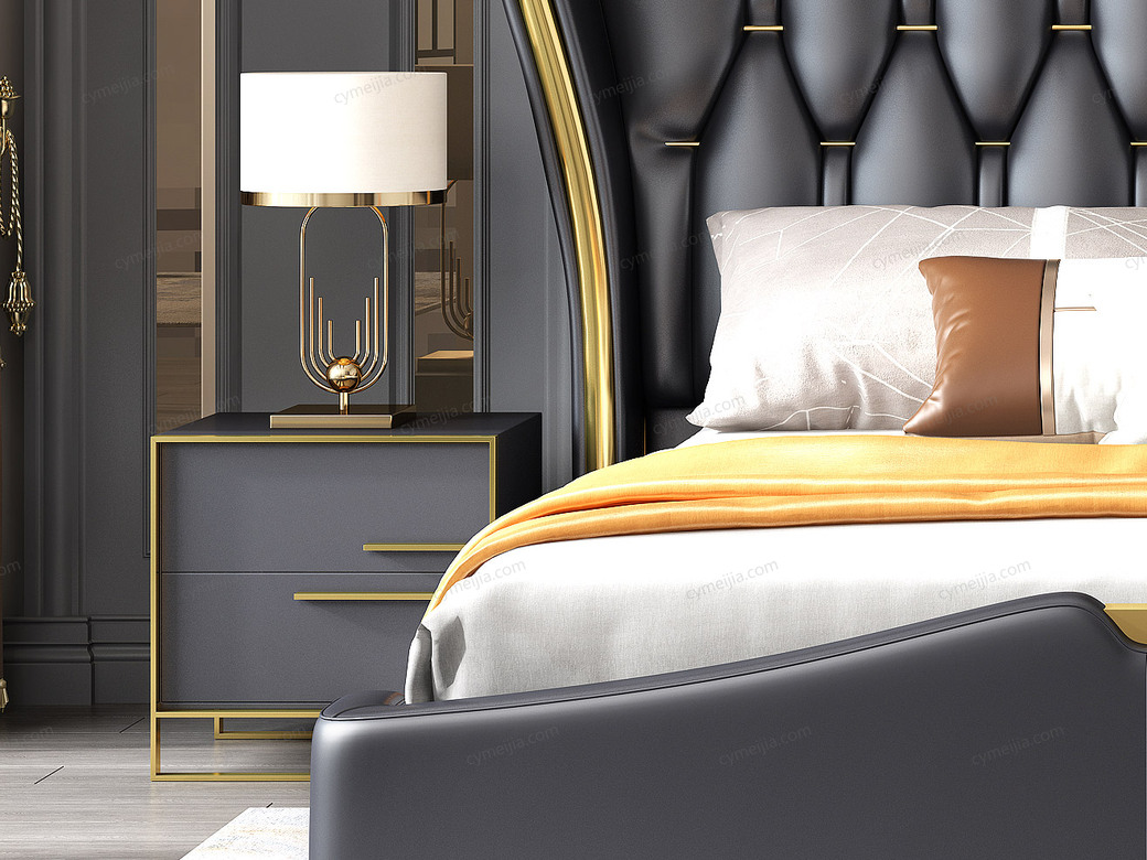 | 产品材质 : | 头层黄牛皮(接触面)+仿真皮(非接触面)+实木(床侧)+10公分松木排骨架 |
