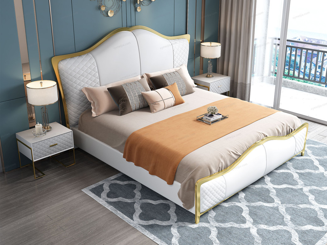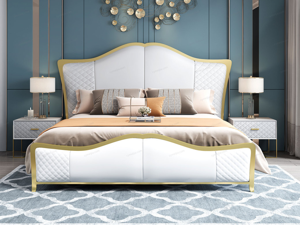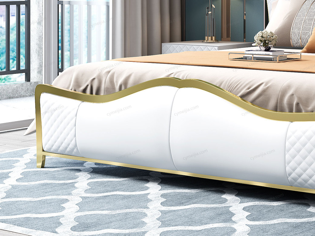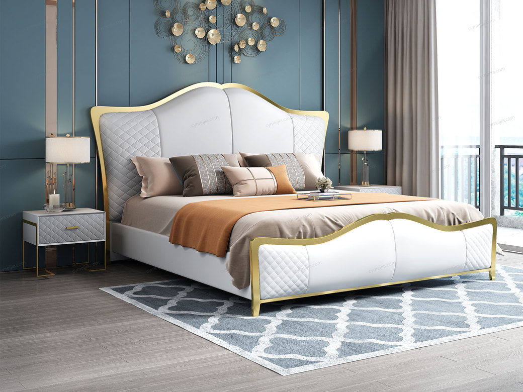 | 产品材质 : | 头层黄牛皮(接触面)+仿真皮(非接触面)+实木(床侧)+10公分松木排骨架 |
