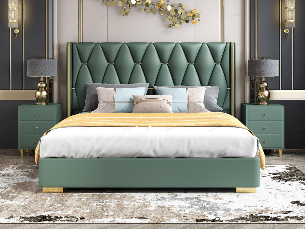 | 产品材质 : | 仿真皮+实木(床侧)+10公分松木排骨架 |