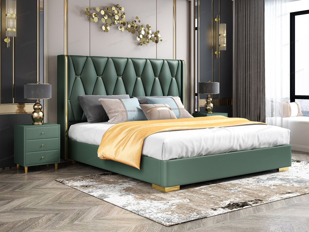 | 产品材质 : | 仿真皮+实木(床侧)+10公分松木排骨架 |