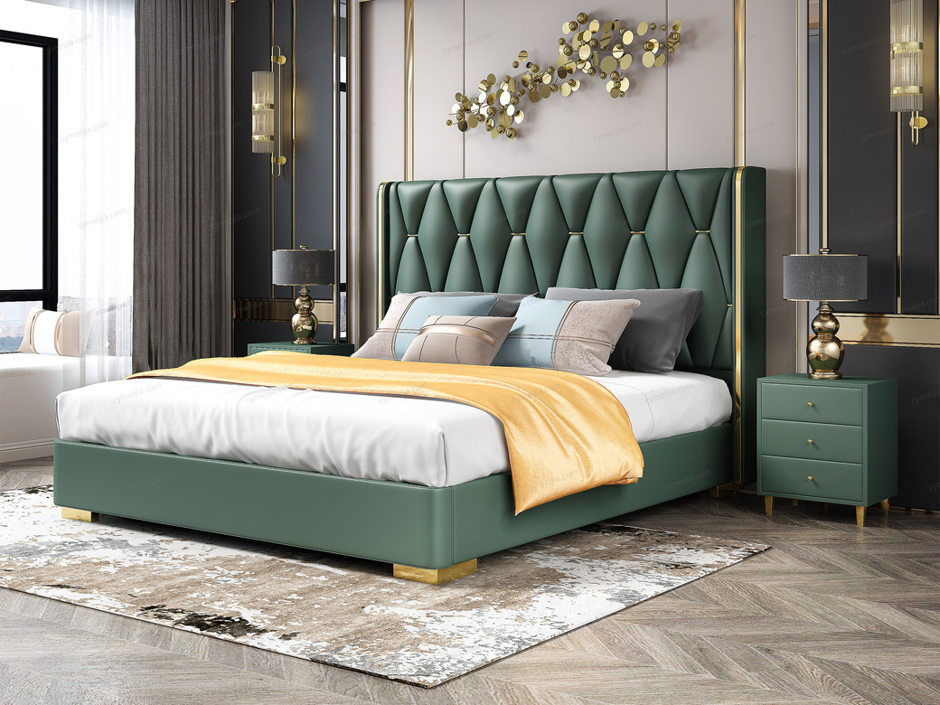 | 产品材质 : | 头层黄牛皮(接触面)+仿真皮(非接触面)+实木(床侧)+10公分松木排骨架 |