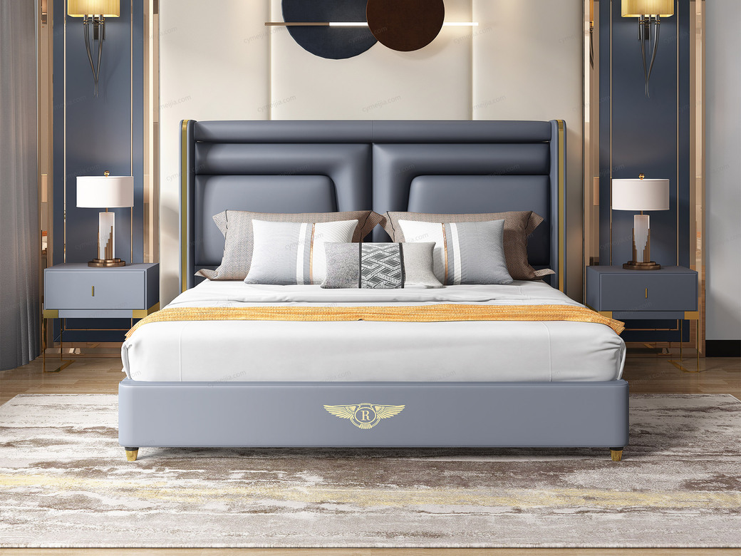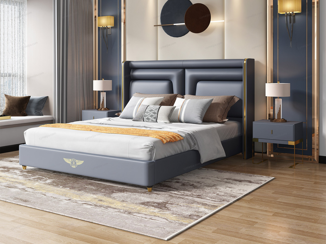 | 产品材质 : | 仿真皮+实木(床侧)+10公分松木排骨架 |