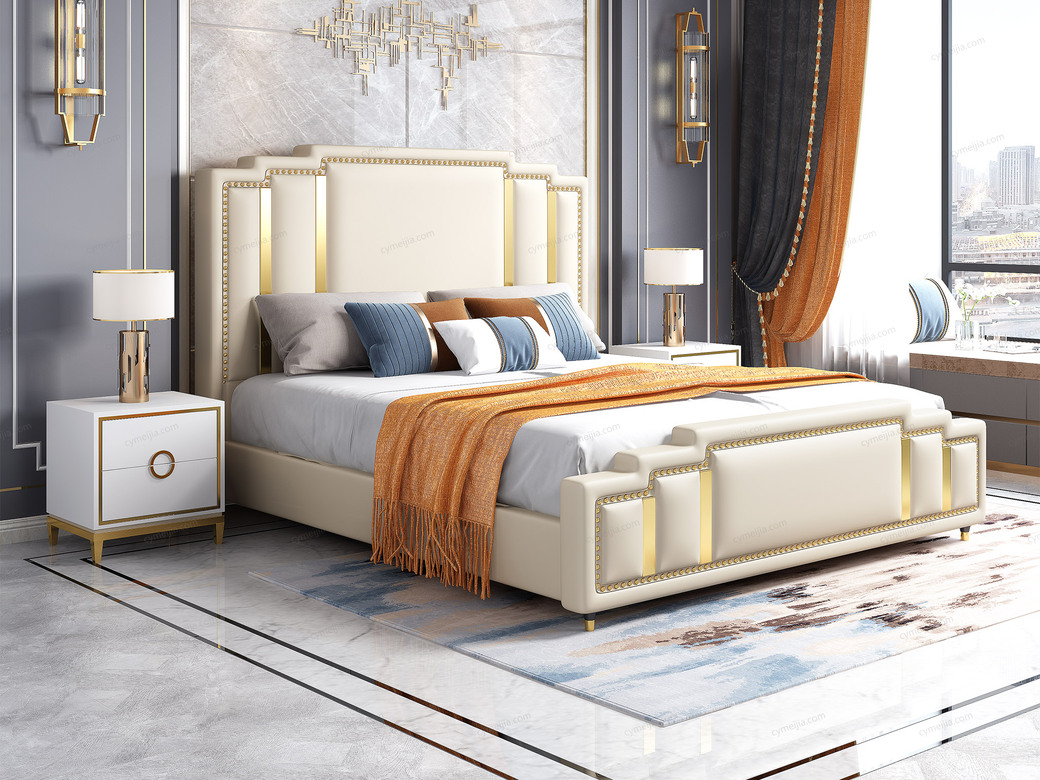 | 产品材质 : | 头层黄牛皮(接触面)+仿真皮(非接触面)+实木(床侧)+10公分松木排骨架 |