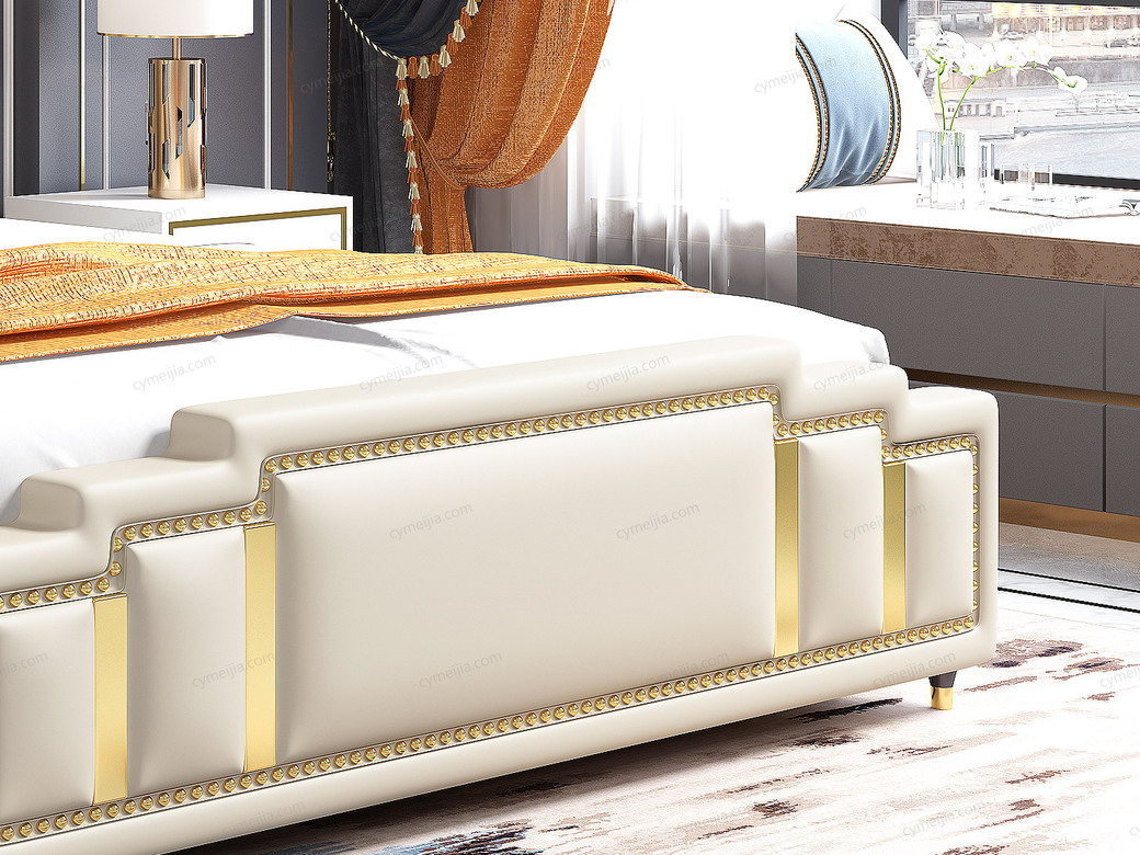 | 产品材质 : | 头层黄牛皮(接触面)+仿真皮(非接触面)+实木(床侧)+10公分松木排骨架 |
