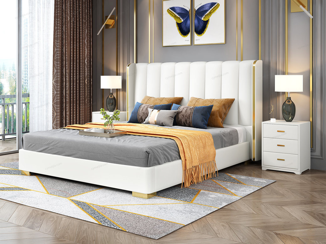 | 产品材质 : | 仿真皮+实木(床侧)+10公分松木排骨架 |