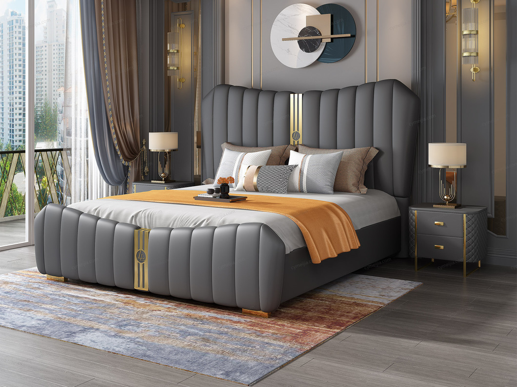 | 产品材质 : | 仿真皮+实木(床侧)+10公分松木排骨架 |