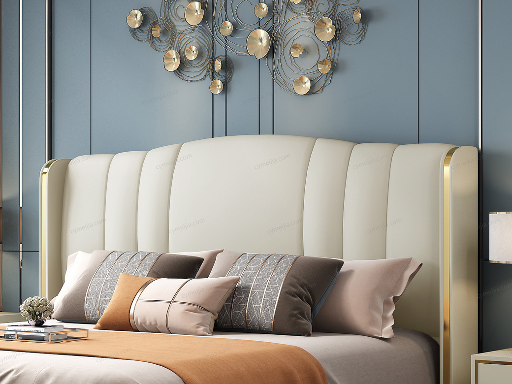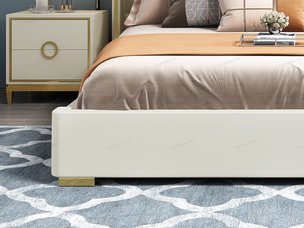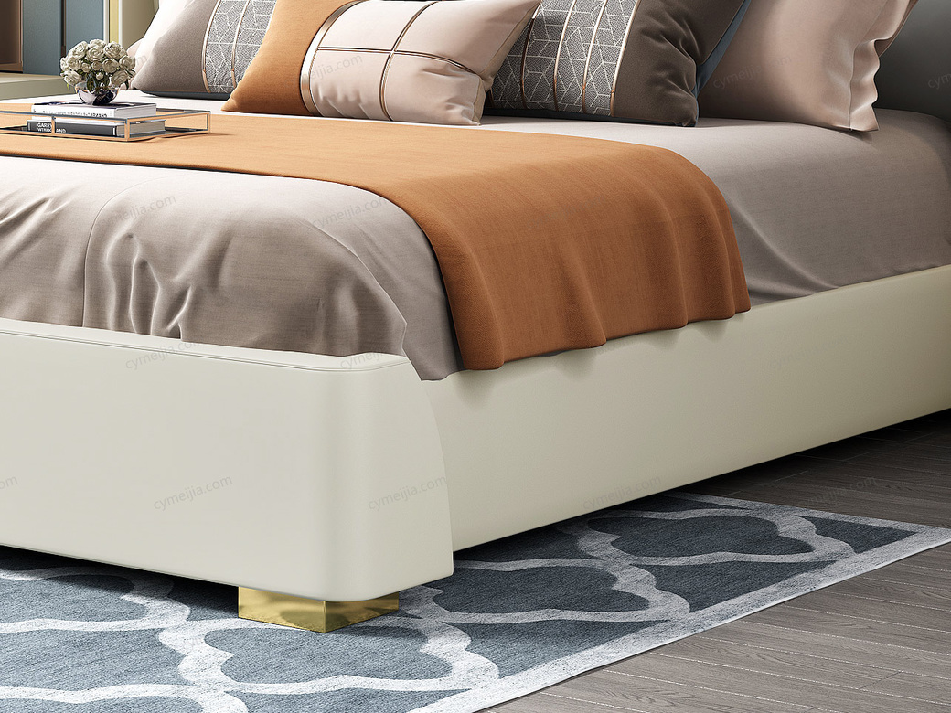 | 产品材质 : | 头层黄牛皮(接触面)+仿真皮(非接触面)+实木(床侧)+10公分松木排骨架 |