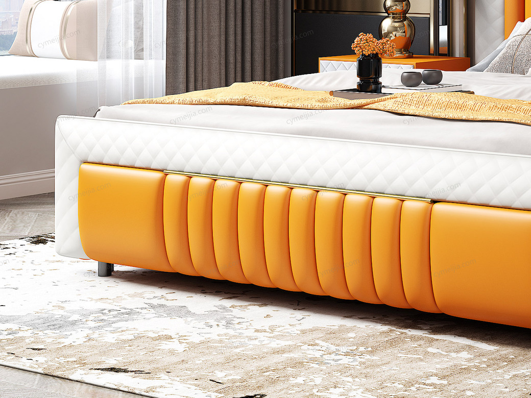 | 产品材质 : | 仿真皮+实木(床侧)+10公分松木排骨架 |