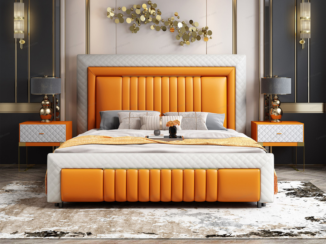 | 产品材质 : | 头层黄牛皮(接触面)+仿真皮(非接触面)+实木(床侧)+10公分松木排骨架 |