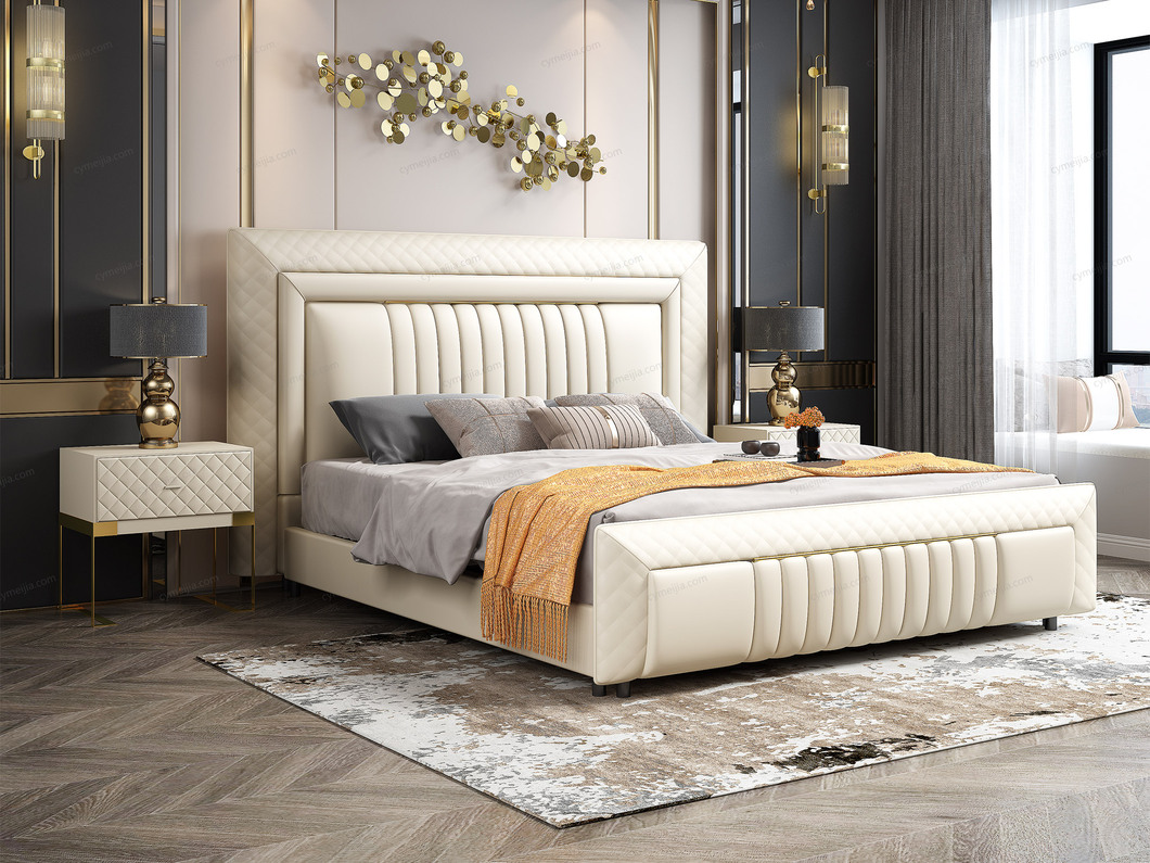 | 产品材质 : | 仿真皮+实木(床侧)+10公分松木排骨架 |