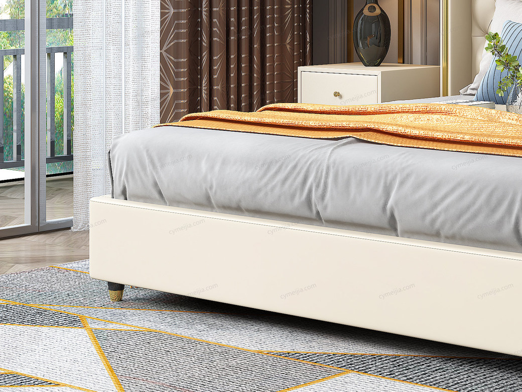 | 产品材质 : | 头层黄牛皮(接触面)+仿真皮(非接触面)+实木(床侧)+10公分松木排骨架 |