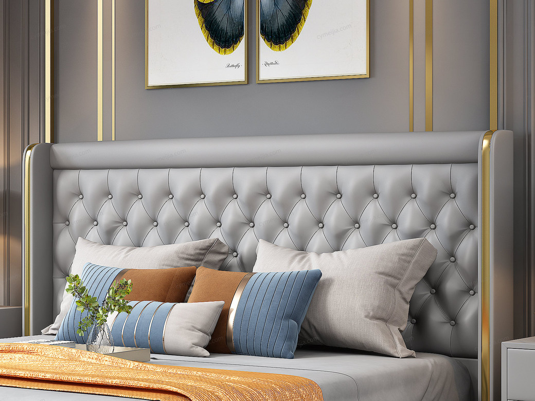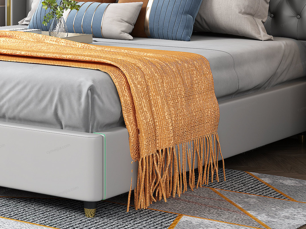 | 产品材质 : | 头层黄牛皮(接触面)+仿真皮(非接触面)+实木(床侧)+10公分松木排骨架 |