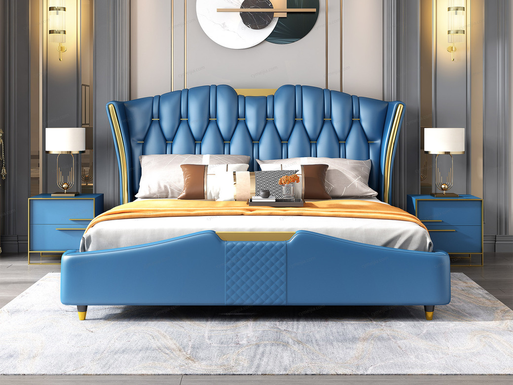 | 包装体积(m3) : 0.96 | 产地 : 佛山 | 产品材质 : 头层黄牛皮(接触面)+仿真皮(非接触面)+实木(床侧)+10公分松木排骨架 | 更多参数>> |
