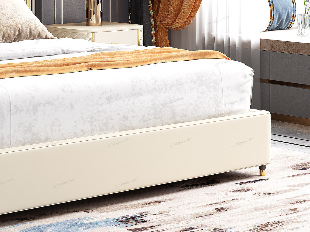 | 产品材质 : | 头层黄牛皮(接触面)+仿真皮(非接触面)+实木(床侧)+10公分松木排骨架 |