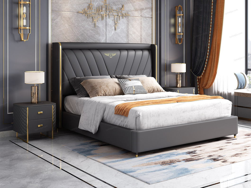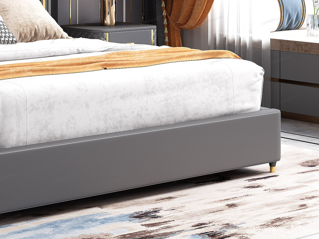 | 产品材质 : | 头层黄牛皮(接触面)+仿真皮(非接触面)+实木(床侧)+10公分松木排骨架 |