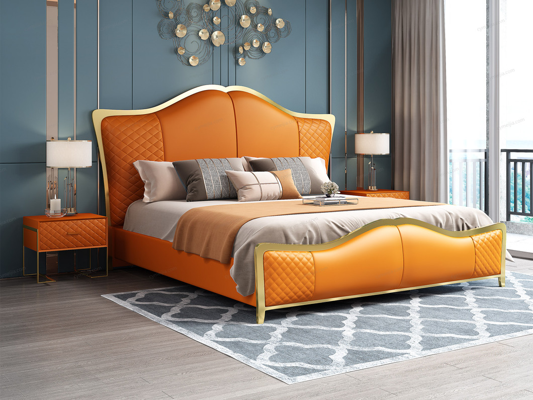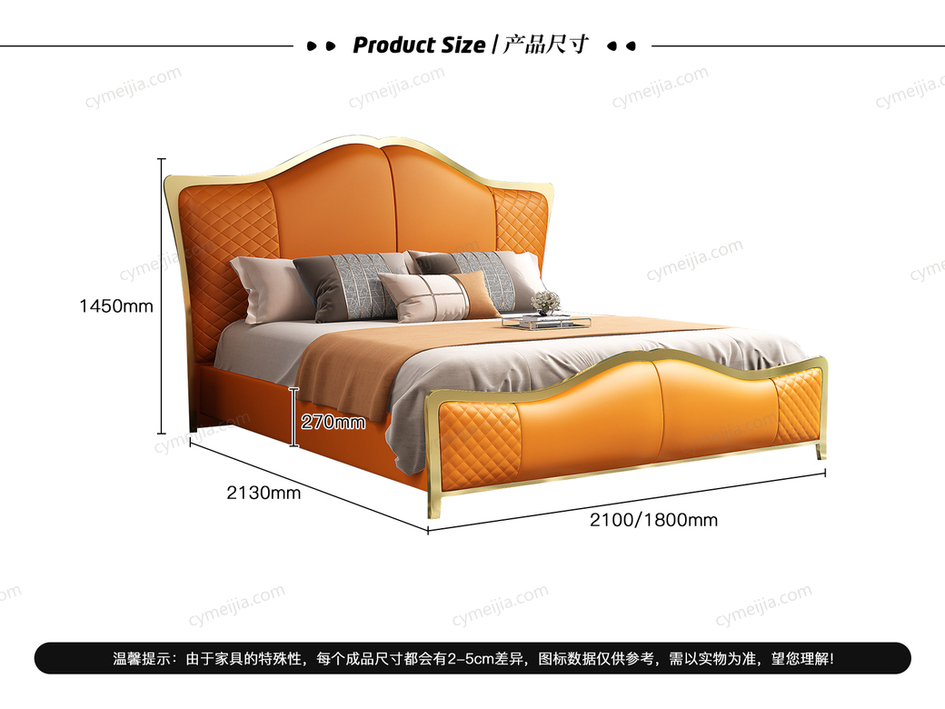 | 产品材质 : | 头层黄牛皮(接触面)+仿真皮(非接触面)+实木(床侧)+10公分松木排骨架 |