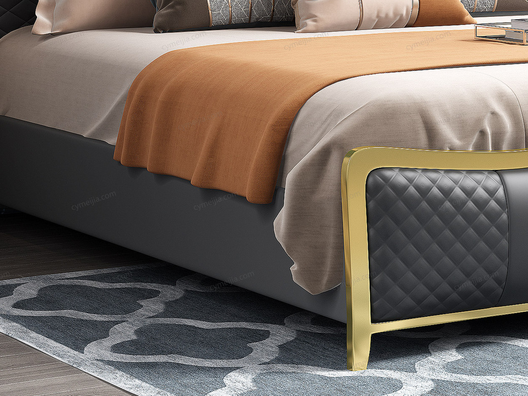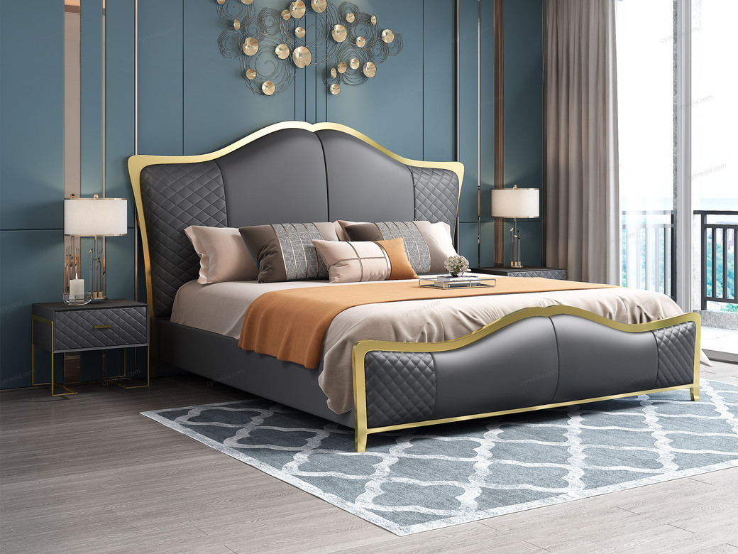 | 产品材质 : | 头层黄牛皮(接触面)+仿真皮(非接触面)+实木(床侧)+10公分松木排骨架 |