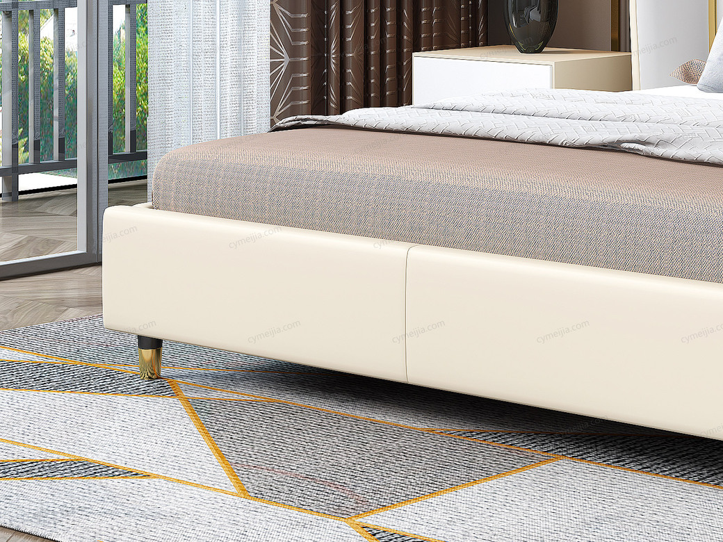 | 产品材质 : | 头层黄牛皮(接触面)+仿真皮(非接触面)+实木(床侧)+10公分松木排骨架 |