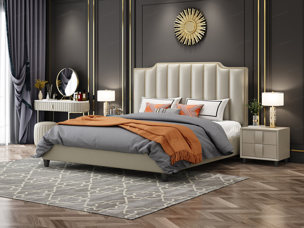 | 产品材质 : | 头层黄牛皮(接触面)+仿真皮(非接触面)+实木(床侧)+10公分松木排骨架 |