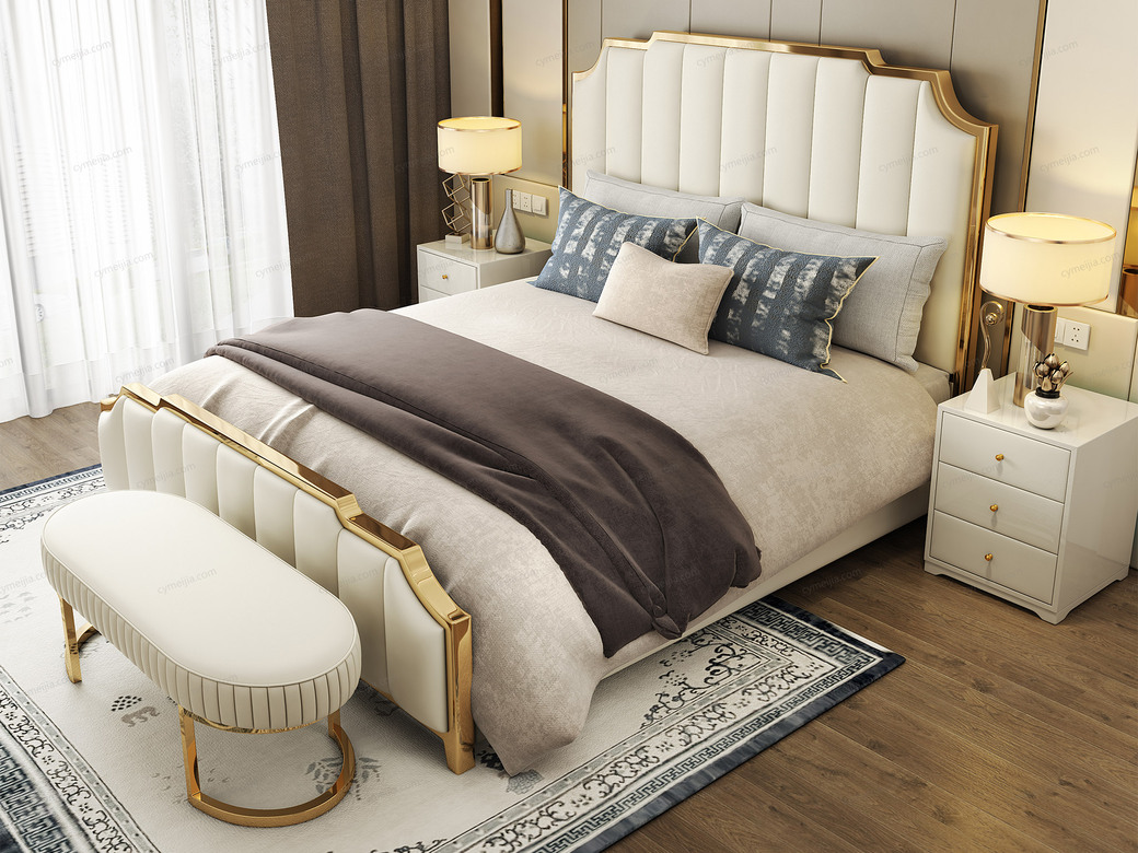 | 产品材质 : | 头层黄牛皮(接触面)+仿真皮(非接触面)+实木(床侧)+10公分松木排骨架 |