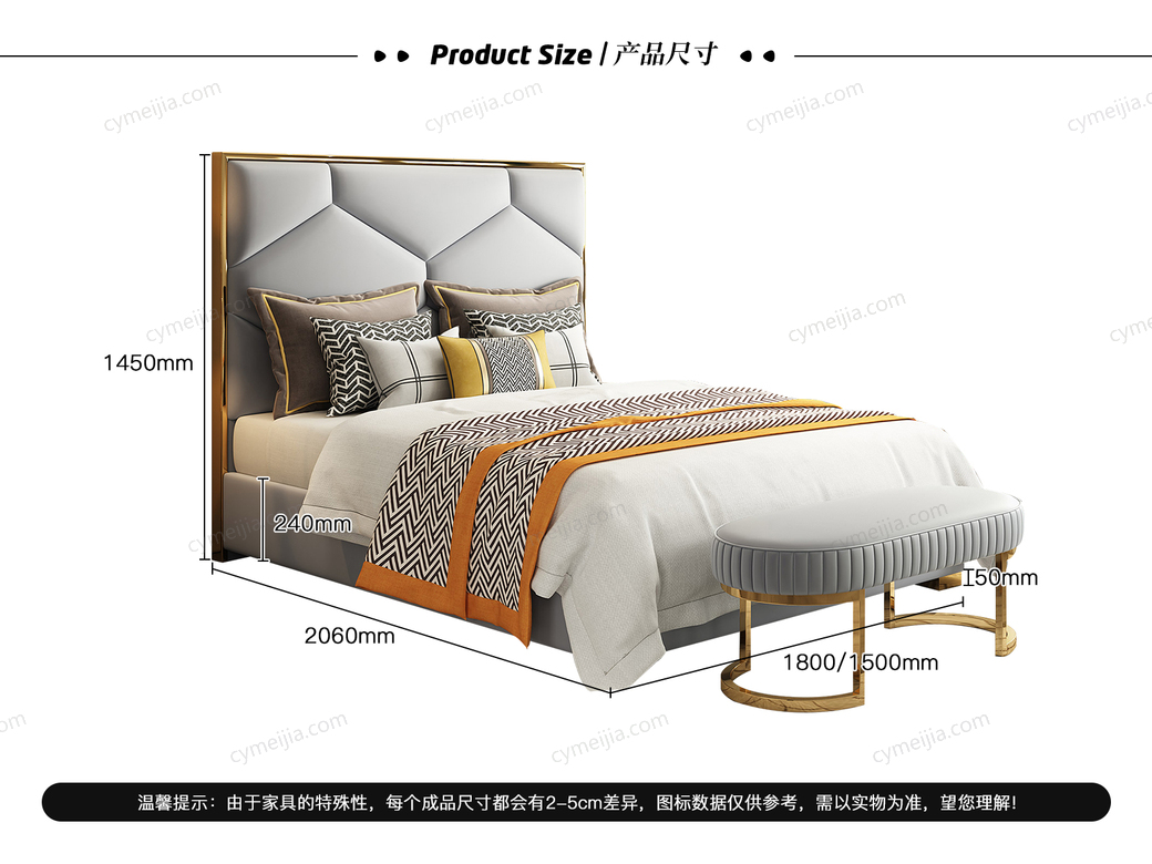 | 适配床垫 : | 长2000*宽1500*高(220-250)mm |