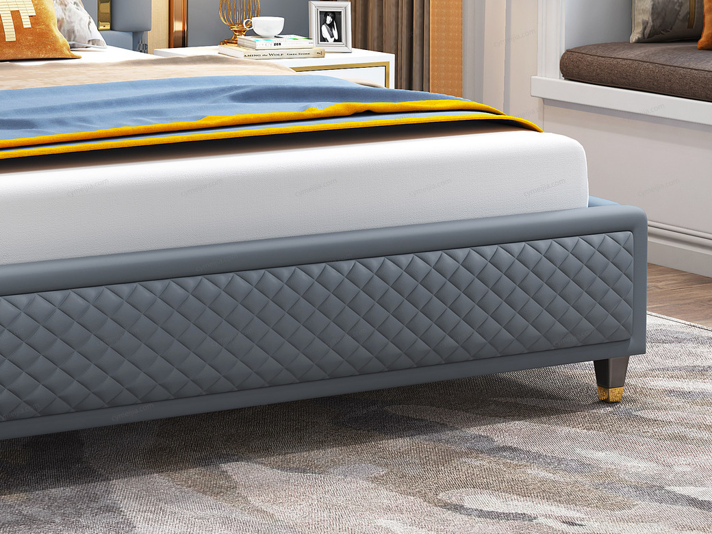 | 产品材质 : | 头层黄牛皮(接触面)+仿真皮(非接触面)+实木(床侧)+10公分松木排骨架 |
