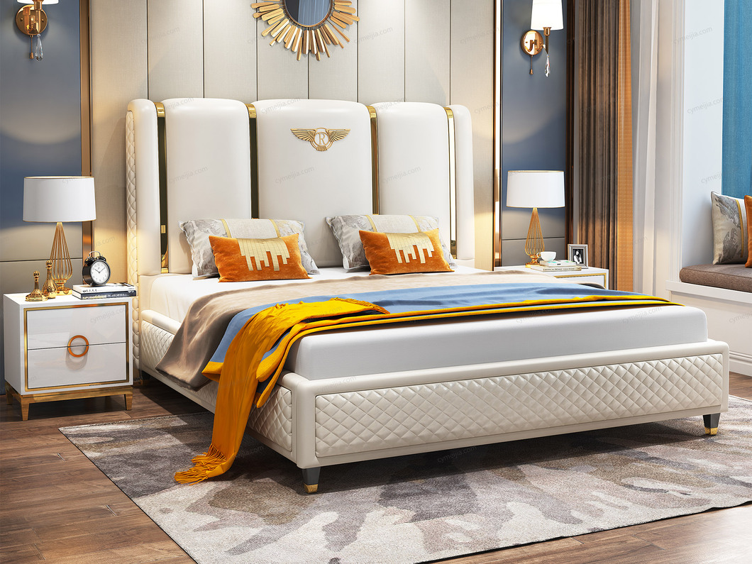 | 产品材质 : | 头层黄牛皮(接触面)+仿真皮(非接触面)+实木(床侧)+10公分松木排骨架 |