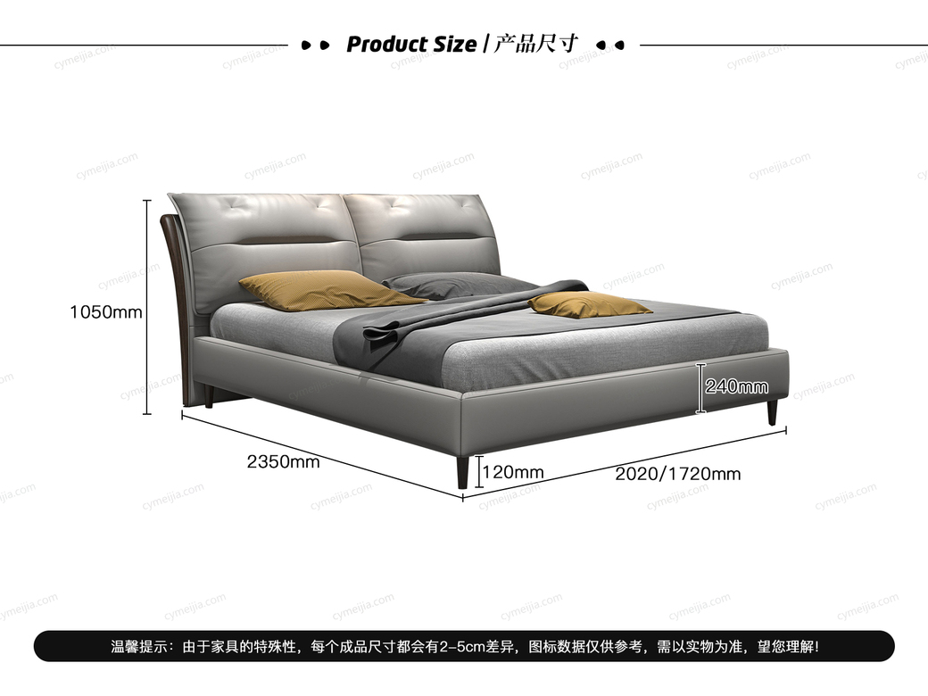 | 产品材质 : | 仿真皮+实木框架+实木夹板+白蜡木床头边+10公分松木排骨架 |