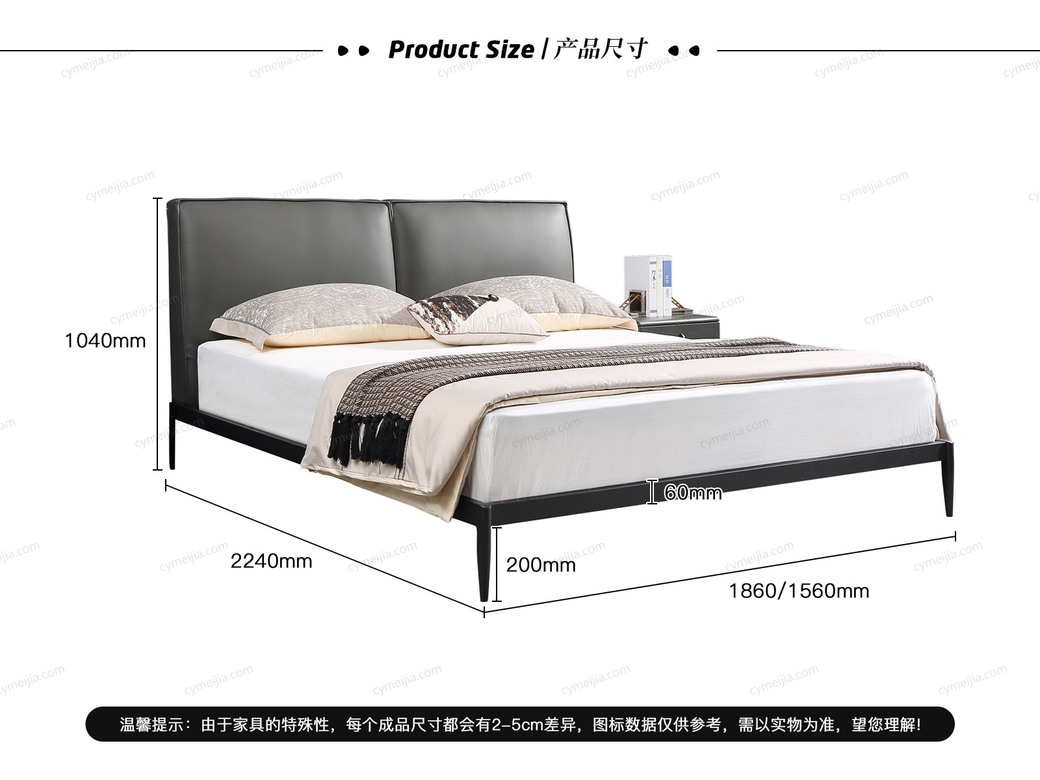 | 适配床垫 : | 长2000*宽1800*高250mm |