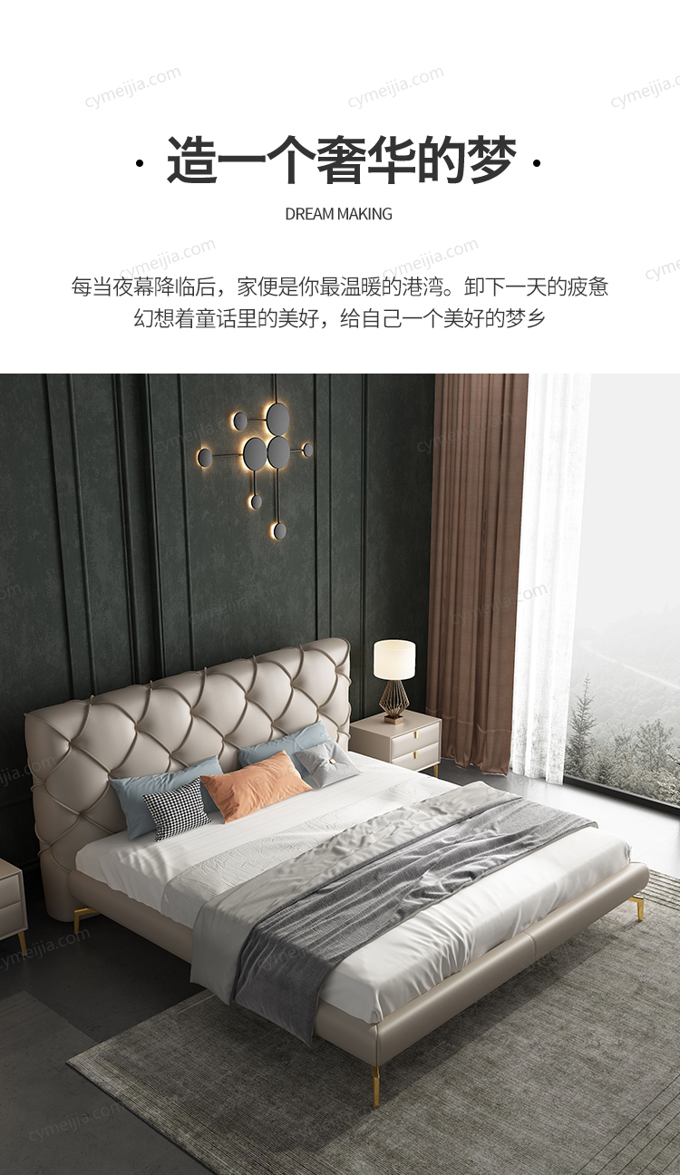 | 适配床垫 : 长2000*宽1500*高220mm | 是否可定制 : 支持定制高箱/颜色,详情请咨询客服 | 包件数 : 3 | |